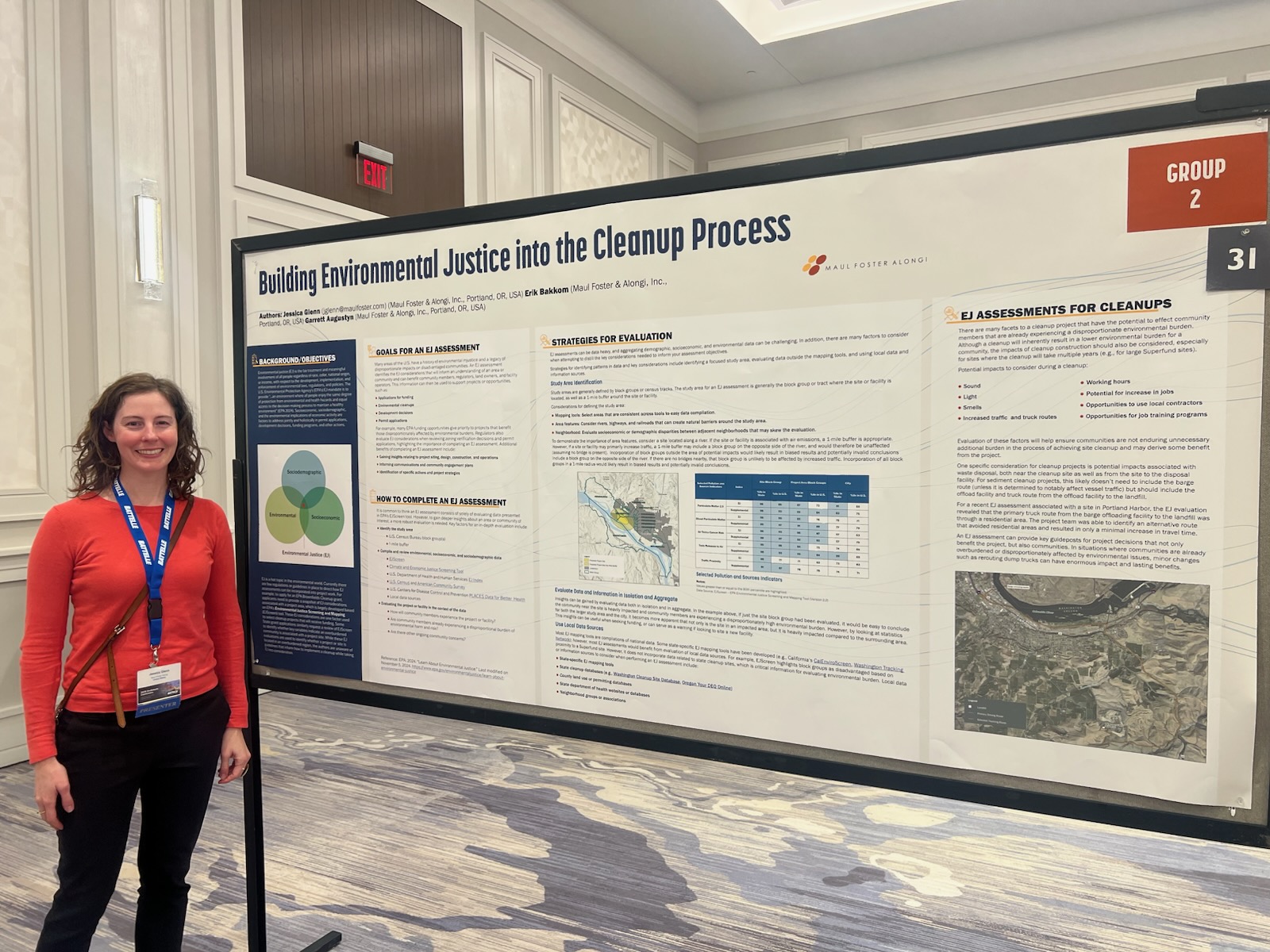 Beyond her technical expertise, Jessica builds strong relationships with teams, both internal and external. She leads projects for public and private sector clients and specifically enjoys collaborating with attorneys, industrial clients, and regulatory stakeholders. Her efforts have expanded MFA’s client base, helped clients secure funding for cleanups, and earned her speaking opportunities at industry conferences, where she shares insights on sediment remediation and environmental justice.