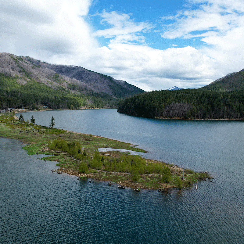 The project includes excavating the built-up sediment from around the Detroit Lake Marina and Kane’s Marina and reusing it elsewhere in the area to create a recreation destination that extends the Detroit Flats Day Use Area into the lake. The newly built-up area would increase habitat for fish and animals, create new fishing access, preserve existing boat channels, and allow people to talk out to an offshore island when water levels are low.